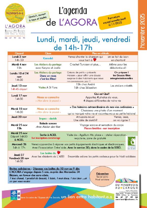 Je télécharge le calendrier des activités de l'Espace de Vie Sociale